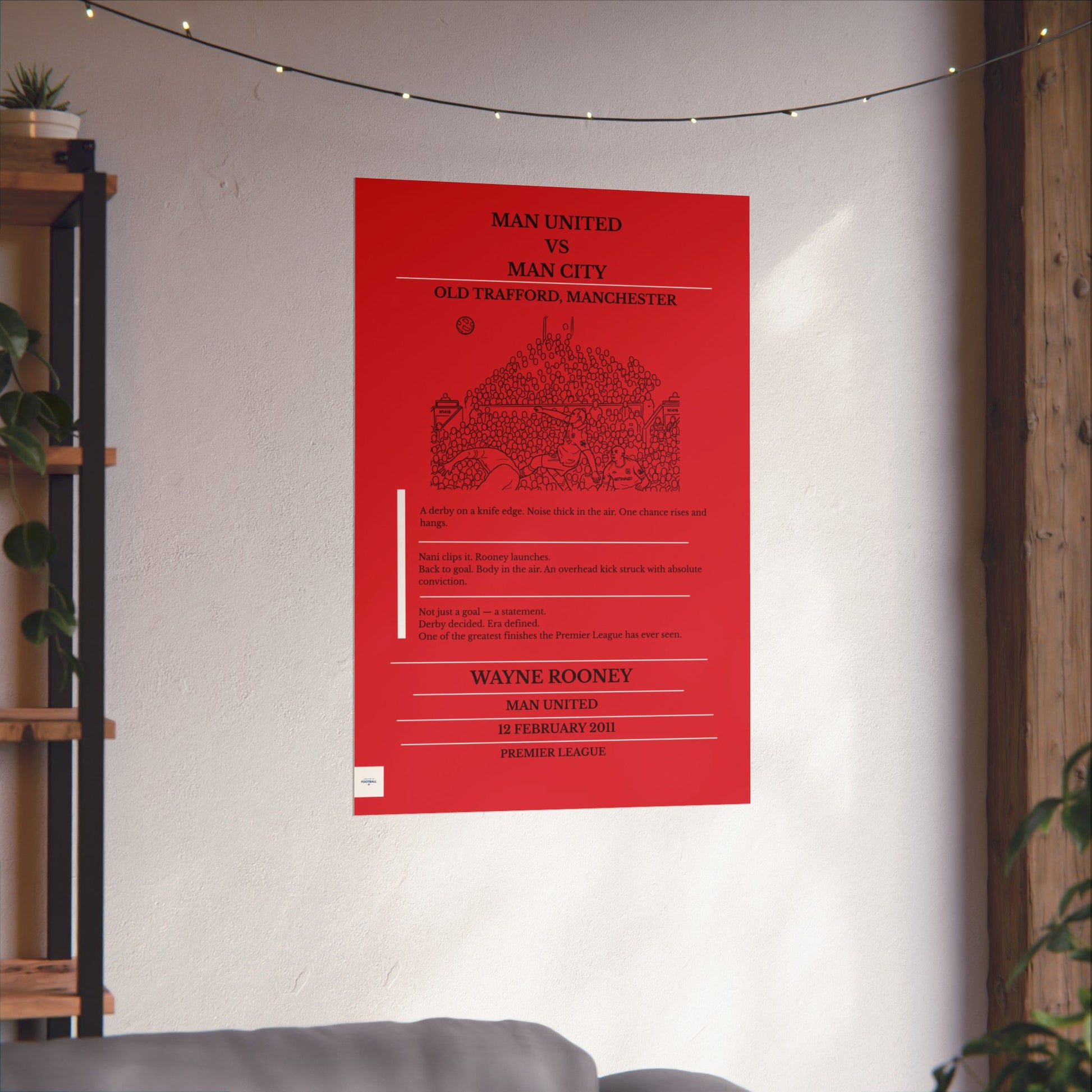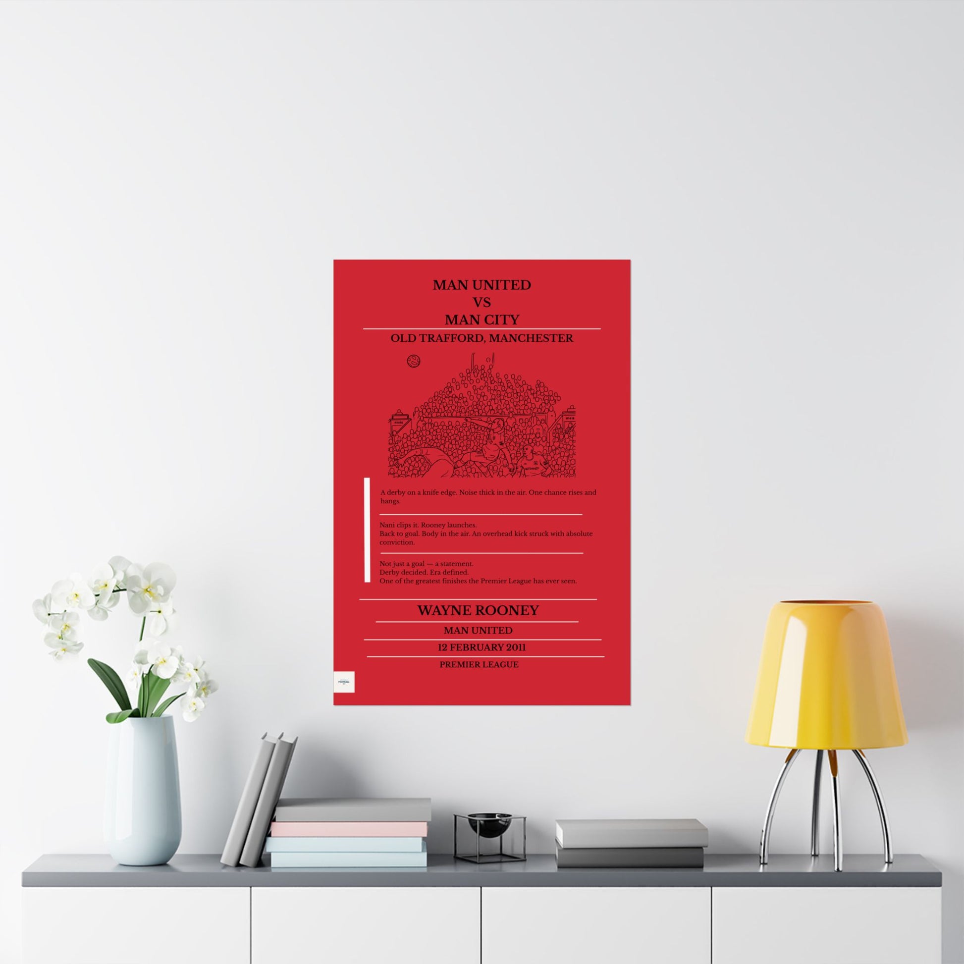 Designed for fans who remember where they were when it happened, this piece captures the detail, date and setting of an iconic football moment — stripped back and ready for your wall.